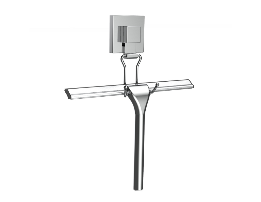 • Silver suction-fit squeegee hook