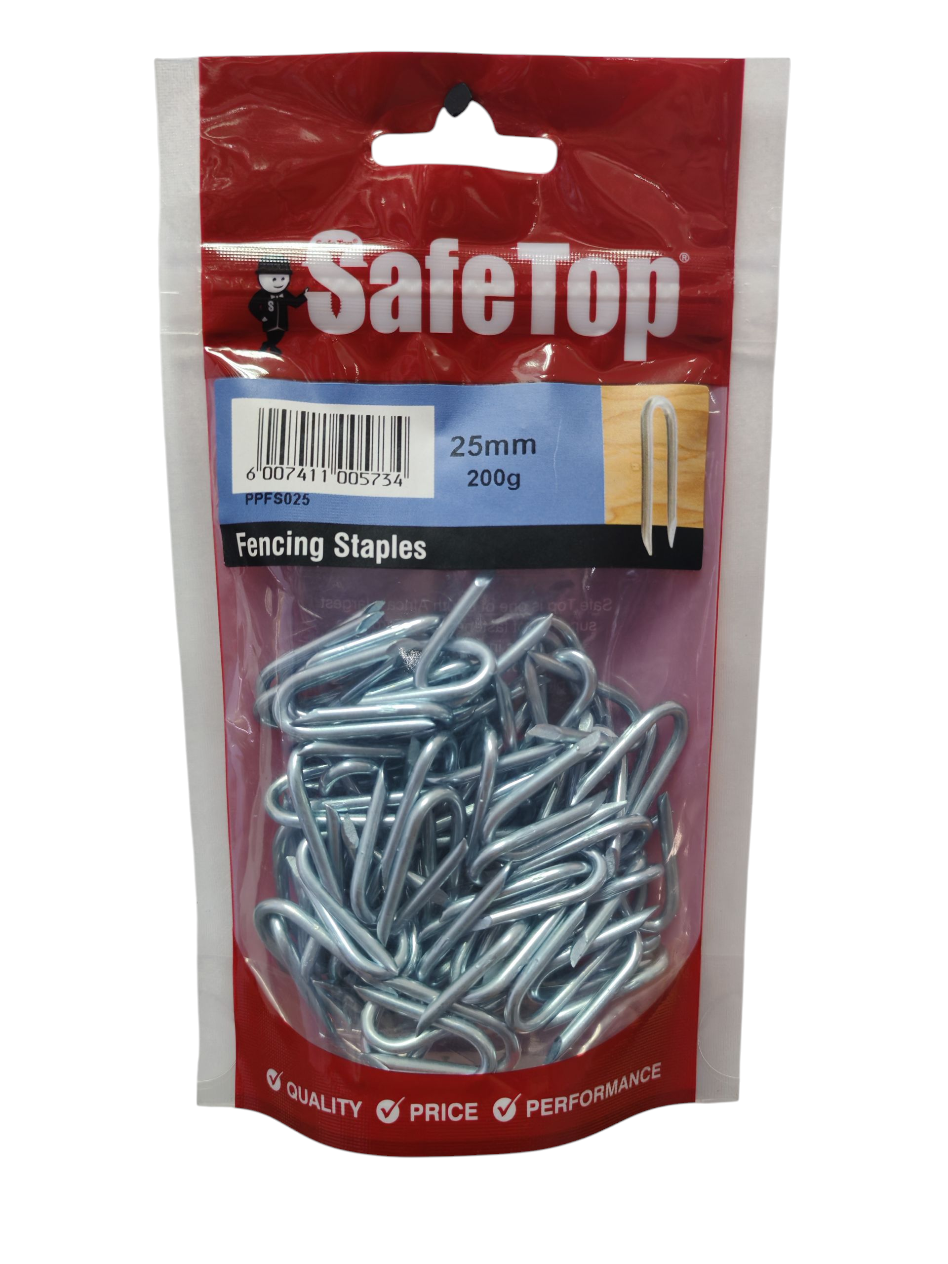 The SafeTop Fencing Staple 25mm 200g is designed to provide secure and long-lasting wire fastening on timber posts. Built from durable galvanised steel, these staples resist rust and weather damage, ensuring strong performance even in harsh outdoor conditions. Their sharp, pointed ends make driving them into wood quick and effortless, reducing the time spent on fencing projects.