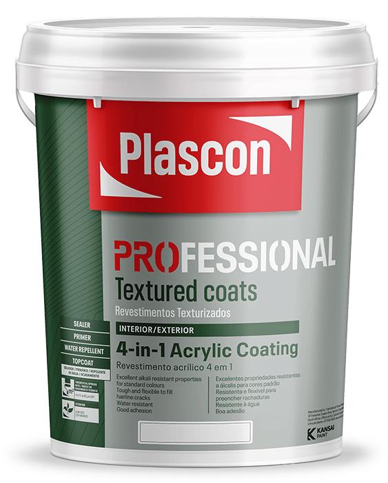 - Excellent Alkali Resistance: The Plascon Professional 4-in-1 Acrylic Coating ensures reliable performance on fresh masonry and cement surfaces.