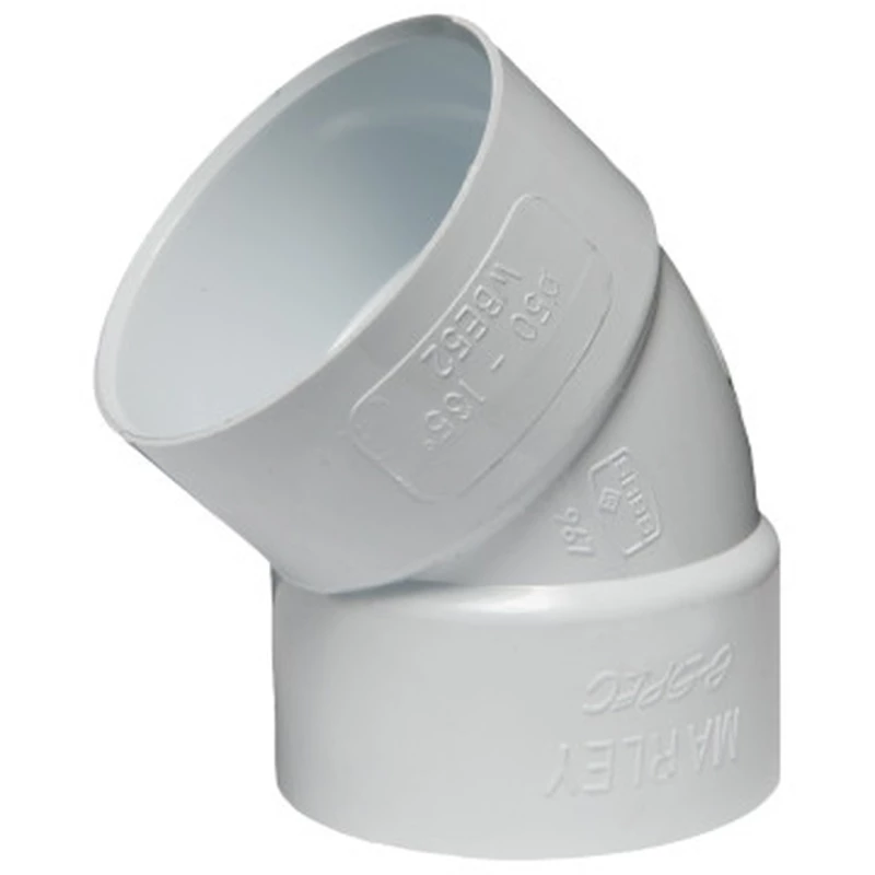 The Marley 50mm 135 Degree PVC Waste Bend features plain ends. This design is perfect for solvent weld applications. Solvent welding creates a secure, permanent, and leak-proof joint that professionals prefer.
